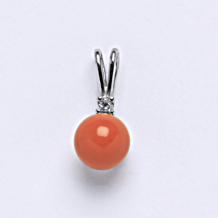 Stříbrný přívěšek s perlou Swarovski v barvě coral. Velikost Swarovski perly je 8 mm. Celková velikost přívěšku je 18 mm. Materiál je stříbro 925/1000.