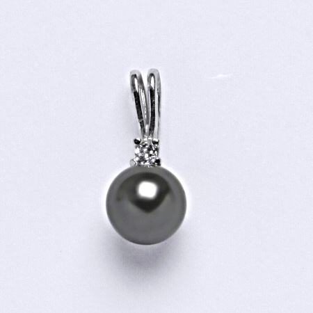 Stříbrný přívěšek s perlou Swarovski v barvě dark gray. Velikost Swarovski perly je 8 mm. Celková velikost přívěšku je 18 mm. Materiál je stříbro 925/1000.
