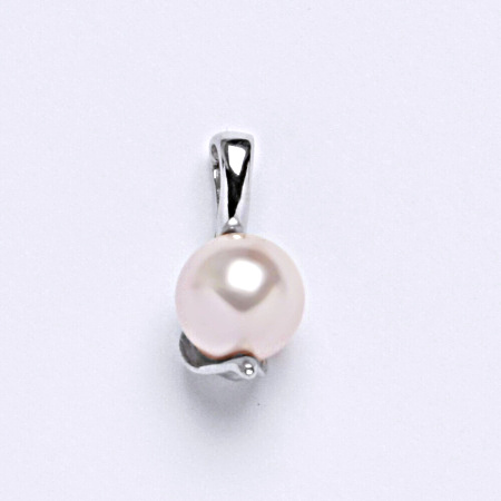Stříbrný přívěšek s perlou Swarovski v barvě rosaline. Velikost Swarovski perly je 8 mm. Celková velikost přívěšku je 18 mm. Materiál je stříbro 925/1000.