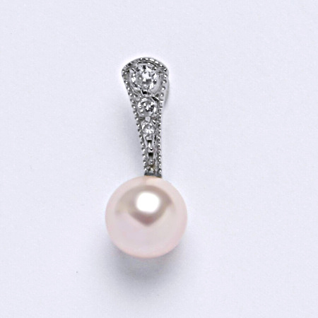 Stříbrný přívěšek s perlou Swarovski v barvě rosaline. Velikost Swarovski perly je 8 mm. Celková velikost přívěšku je 20 mm. Materiál je stříbro 925/1000.