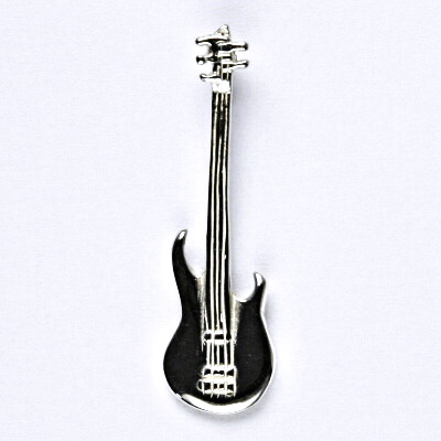 Stříbrný přívěsek ve tvaru basové kytary. Rozměr přívěsku je 31 mm na výšku a 9 mm na šířku. Orientační váha přívěsku je 1,33 g. Materiál je stříbro 925/1000.