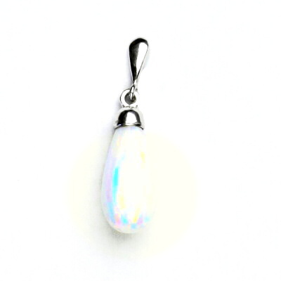 Stříbrný přívěsek, bílý syntetický opál, P 41/22