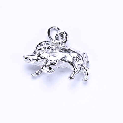 Stříbrný přívěšek figurka - prase - divočák. Rozměr přívěšku je 14 mm včetbě očka a 16 mm na šírku. Materiál je stříbro 925/1000. Orientační váha přívěšku je 2,27 g.