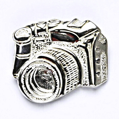 Stříbrný přívěšek ve tvaru fotoaparátu. Rozměr přívěšku na výšku je 21 mm a 25 mm na šířku. Materiál je stříbro 925/1000. Orientační váha přívěšku je 4,85 g.