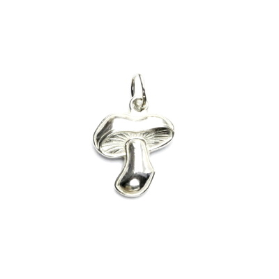 Stříbrný přívěsek ve tvaru hříbku. Orientační hmotnost šperku je 1,38 g, rozměry jsou 19 mm včetně očka na výšku a 12 mm na šířku. Vyhotoveno ze stříbra ryzosti 925/1000.