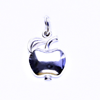 Drobný přívěsek ze stříbra ve tvaru jablka vyhotovený ze stříbra ryzosti 925/1000. Orientační hmotnost šperku je 0,92 g, jeho rozměry jsou 1,80 cm včetně očka na výšku a 1,20 cm na šířku.