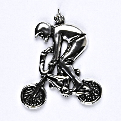 Stříbrný přívěsek, jezdec na BMX s patinou, přívěsek ze stříbra, P 246