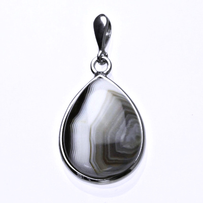 Stříbrný přívěsek kapka s přírodním achátem o rozměru 20x15 mm. Materiál přívěsku je stříbro 925/1000. Orientační váha přívěsku je 5,22 g. Celková výška přívěsku i s očkem je 35 mm.