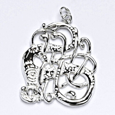 Přívěsek ze stříbra keltský had. Celková výška přívěsku je 35 mm šířka je 26 mm. Orientační váha přívěsku je 4,29 g. Materiál je stříbro 925/1000.