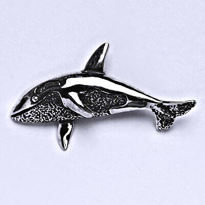 Stříbrný přívěšek kosatka - velryba s patinou. Ryzost stříbra je 925/1000. Velikost přívěšku je 35 mm. Orientační váha je 2,50 g.