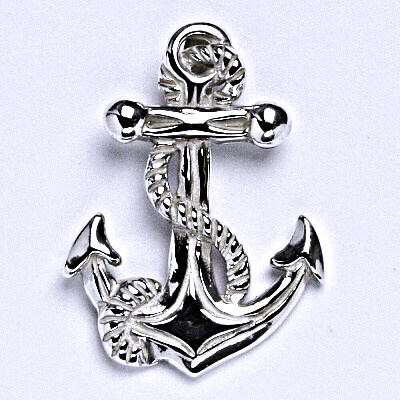 Stříbrný přívěsek ve tvaru kotvy. Celková výška přívěsku je 26 mm. Orientační váha přívěsku je 2,69 g. Materiál je stříbro 925/1000.