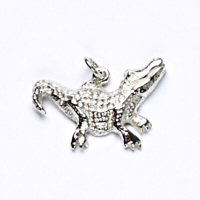 Stříbrný přívěsek ve tvaru krokodýla. Rozměr přívěšku včetně očka je 18 mm a na šířku 22 mm. Materiál je stříbro 925/1000. Orientační váha přívěšku je 1,65 g.