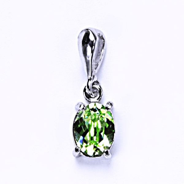 Stříbrný přívěšek je zdoben krystalem Swarovski v barvě chryzolit o rozměru 8x6 mm. Materiál přívěšku je stříbro 925/1000.
