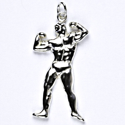 Stříbrný přívěsek ve tvaru kulturisty. Rozměr přívěsku je 35 mm na výšku včetně očka a 7 mm na šířku. Orientační váha přívěsku je 2,48 g. Materiál je stříbro 925/1000.