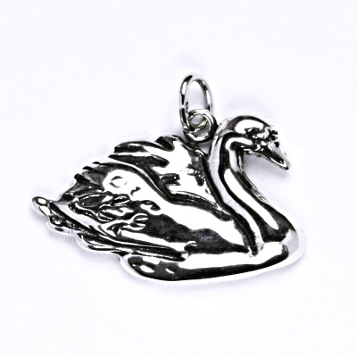 Stříbrný přívěšek ve tvaru labutě s patinou. Velikost přívěšku i o očkem je 18 mm. Rozměr přívěšku na šířku je 24 mm. Orientační váha přívěšku je 2,05 g. Materiál je stříbro 925/1000.