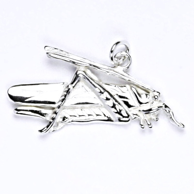 Stříbrný přívěšek ve tvaru luční kobylky. Rozměr prívěšku na výšku je 21 mm i s očkem a na šířku je 27 mm. Orientační váha přívěšku je 1,44 g. Materiál je stříbro 925/1000.