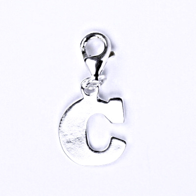 Stříbrný přívěšek ve tvaru písmenka "C" na karabince. Výška písmenka i s karabinou 20 mm. Materiál je stříbro 925/1000.