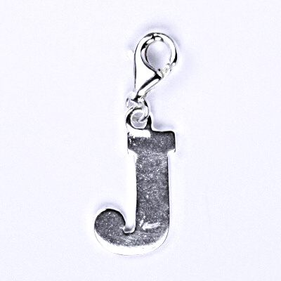 Stříbrný přívěšek ve tvaru písmenka "J" na karabince. Výška písmenka i s karabinou 20 mm. Materiál je stříbro 925/1000.