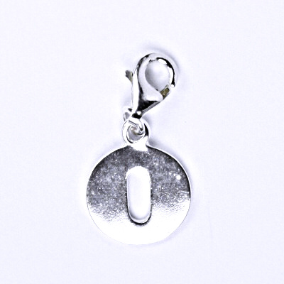 Stříbrný přívěšek ve tvaru písmenka "O" na karabince. Výška písmenka i s karabinou 20 mm. Materiál je stříbro 925/1000.