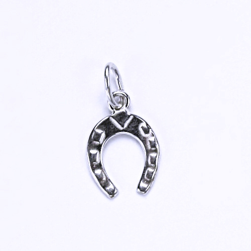 Stříbrný přívěsek ve tvaru podkovy. Materiál je stříbro 925/1000. Rozměr přívěsku je 15 mm včetně očka na výšku a 18 mm na šířku. Orientační váha přívěsku je 0,35 g.