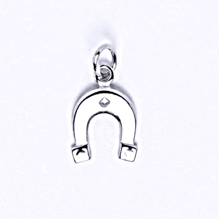 Stříbrný přívěšek ve tvaru podkovy. Mteriál je stříbro 925/1000. Rozměr přívěsku je 17 mm včetně očka na výšku a 9 mm na šířku. Orientační váha přívěsku je 0,52 g.