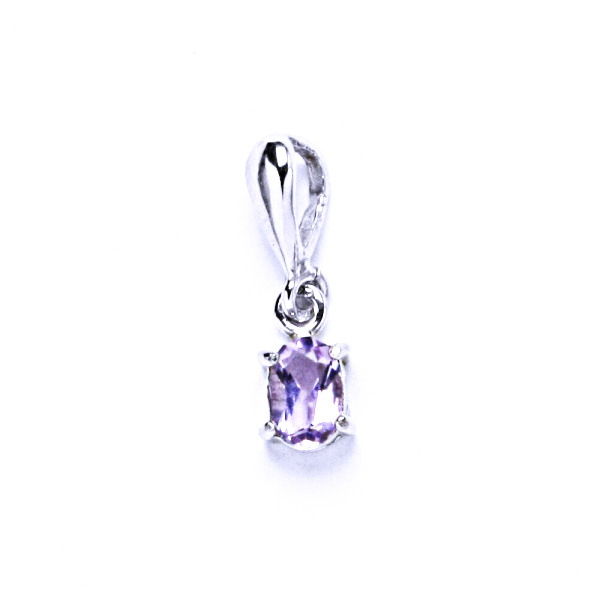 Stříbrný přívěsek s přírodním ametystem. Velikosti oválu 6x4 mm. Tento šperk má povrchovou úpravu - čisté Rhodium. Materiál je stříbro 925/1000.