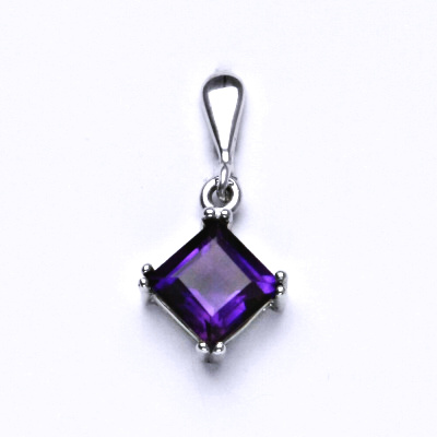 Stříbný přívěsek s přírodním tmavým ametystem o rozměru 7x7 mm. Materiál je stříbro 925/1000.