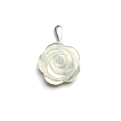 Stříbrný přívěsek, přírodní bílá perleť, růžička 16 mm, P 1489