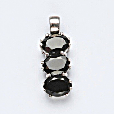 Stříbrný přívěsek je zdoben přírodními granáty. Rozměr přívěsku na výšku je 22 mm včetně očka a 8 mm na šířku. Orientační váha přívěšku je 2,97 g. Materiál je stříbro 925/1000.
