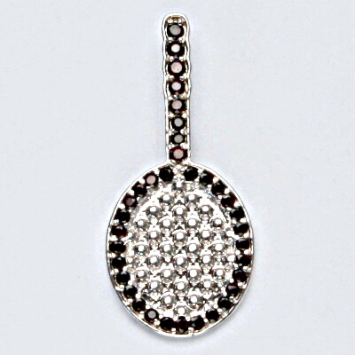 Stříbrný přívěsek je zdoben zirkony a přírodními granáty okolo zirkonů. Rozměr přívěsku na výšku je 45 mm a 20 mm na šířku. Orientační váha přívěšku je 4,93 g. Materiál je stříbro 925/1000.