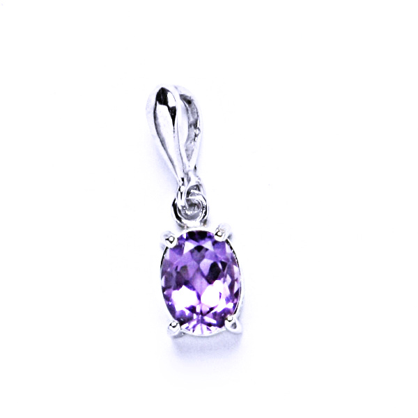 Stříbrný přívěsek s pravým přírodním ametystem velikosti oválu 8x6 mm.Tento šperk má povrchovou úpravu.K tomuto přívěsku nabízí náš E-shop náušnice nebo prsten do soupravy.