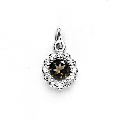 Stříbrný přívěsek ve stylu populárního modelu Kate zdobí přírodní záhněda o průměru 5,5 mm, po jehož obvodu jsou zasazeny drobné zirkony čiré barvy.