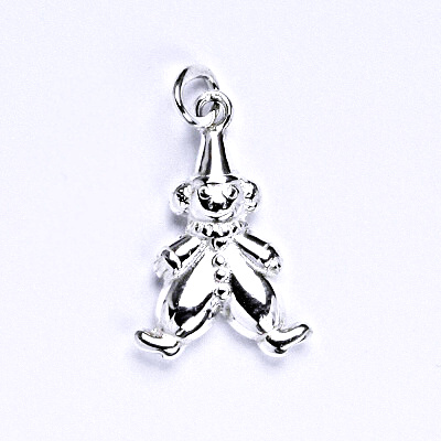 Stříbrný přívěšek ve tvaru šaška, oboustranný. Celková výška přívěšku je 21 mm, šířka 10mm. Orientační váha je 1,55 g. Materiál je stříbro 925/1000.