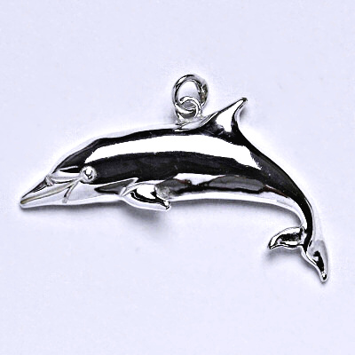 Stříbrný přívěšek delfín. Ryzost stříbra je 925/1000. Velikost přívěšku je 32 mm. Orientační váha je 2,18 g.