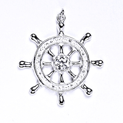 Stříbrný přívěsek ve tvaru kormidla se syntetickým zirkonem. Celková výška přívěsku je 35 mm. Orientační váha přívěsku je 4,16 g. Materiál je stříbro 925/1000.