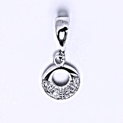 Stříbrný přívěšek s bílým syntetickým zirkonem. Velikost přívěšku i s ouškem je 23 mm.