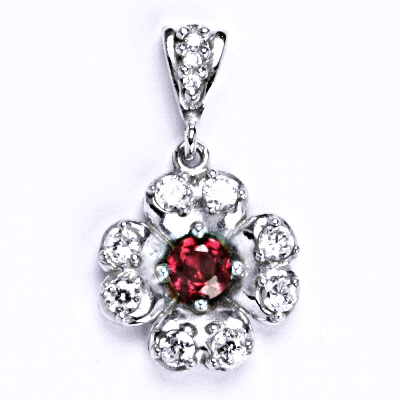 Stříbrný přívěšek s čirými zirkony a rubínem, kytička, P 1402/2
