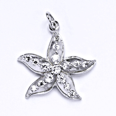 Stříbrný přívěšek s čirými zirkony hvězdice. Velikost přívěšku je 23 mm. Materiál je stříbro 925/1000.