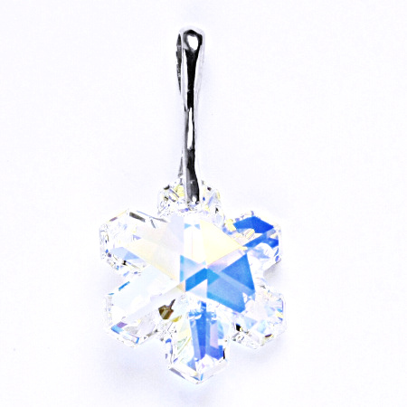 Stříbrný přívěšek s krystalem Swarovski Snowflake AB krystal. Velikost krystalu je 20 mm. Celková délka přívěšku je 34 mm.