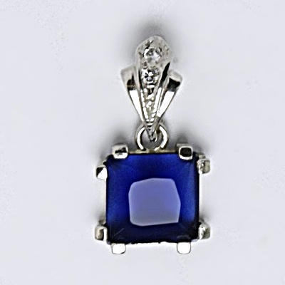 Stříbrný přívěšek s krystalem Saphere. Velikost krystalu 10x10 mm. Velikost přívěšku i s ouškem 24 mm.