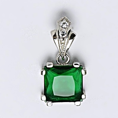 Stříbrný přívěšek s krystalem emerald. Velikost krystalu 10x10 mm. Velikost přívěšku i s ouškem 24 mm.