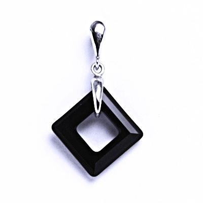 Stříbrný přívěsek s krystalem Swarovski velikosti 14 x 14 mm.Barva Jet.Celková délka přívěsku - 30 mm.Tyto šperky mají povrchovou úpravu - čisté Rhodium nezpůsobující žádné alergické reakce. Spodní strana krystalu upravena similizací, nutno šperk nosit