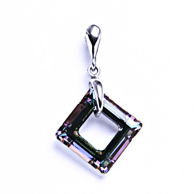 Stříbrný přívěsek s krystalem Swarovski velikosti 14 x 14 mm.Barva Vitrail Light.Celková délka přívěsku - 30 mm.Tyto šperky mají povrchovou úpravu - čisté Rhodium nezpůsobující žádné alergické reakce. Spodní strana krystalu upravena similizací, nutno š
