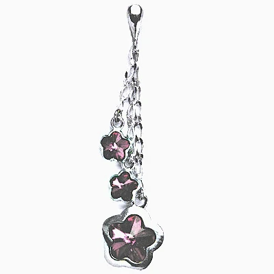 Stříbrný přívěšek kytičky , Swarovski krystaly fuchsie -P 1297/3/22