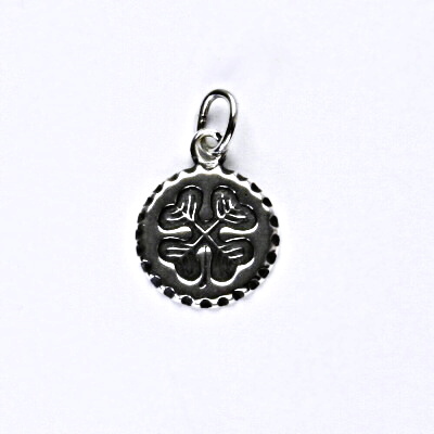 Stříbrný přívěsek s patinou - čtyřlístek. Materiál je stříbro 925/1000. Rozměr přívěsku je 15 mm na výšku včetně očka a 10 mm na šířku. Orientační váha přívěsku je 0,73 g.