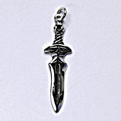 Stříbrný přívěsek s patinou ve tvaru dýky je vyroben ze stříbra o ryzosti 925/1000. Rozměr přívěšku je 33 mm na výšku i s očkem a 8 mm na šířku. Orientační váha přívěsku je 1,21 g.