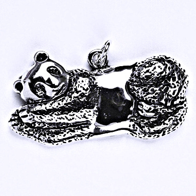 Stříbrný přívěsek s patinou ve tvaru medvídka pandy. Celková výška přívěsku je 16 mm. Orientační váha přívěsku je 3,29 g. Materiál je stříbro 925/1000.