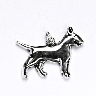 Stříbrný přívěsek s patinou ve tvaru psa rasa bulterier. Celková výška přívěsku je 16 mm. Orientační váha přívěsku je 1,46 g.Materiál je stříbro 925/1000.