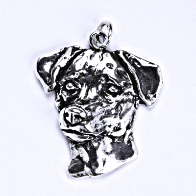 Stříbrný přívěšek s patinou ve tvaru hlavy psa rasell teriera. Výška přívěšku i se závěsem je 25 mm. Materiál je stříbro 925/1000.