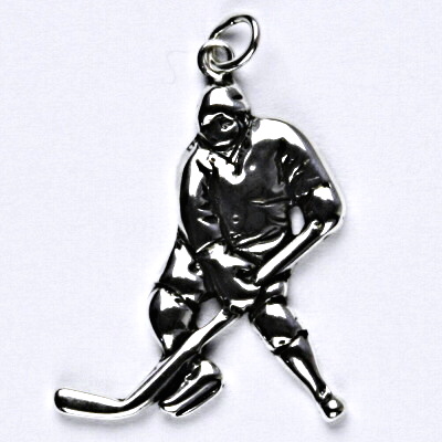 Stříbrný přívěsek ve tvaru hokejisty s patinou. Rozměr přívěsku je 30 mm na výšku včetně očka a 20 mm. Materiál je stříbro 925/1000. Orientační váha přívěsku je 1,96 g.
